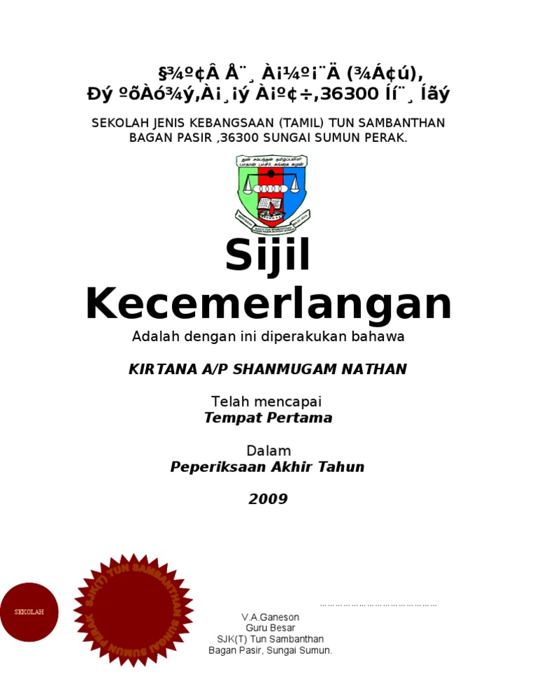 Contoh Sijil Kecemerlangan Akademik Peperiksaan Akhir Tahun